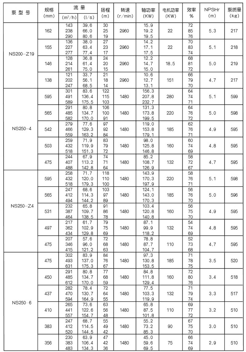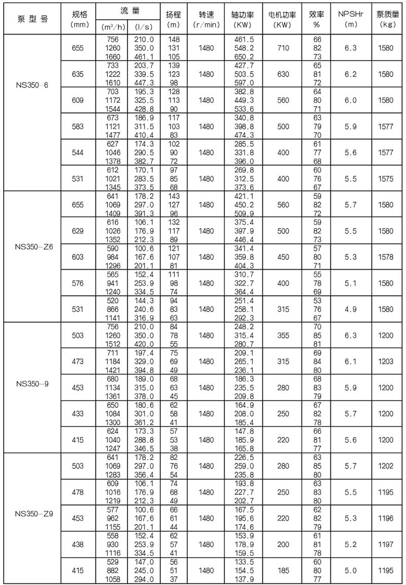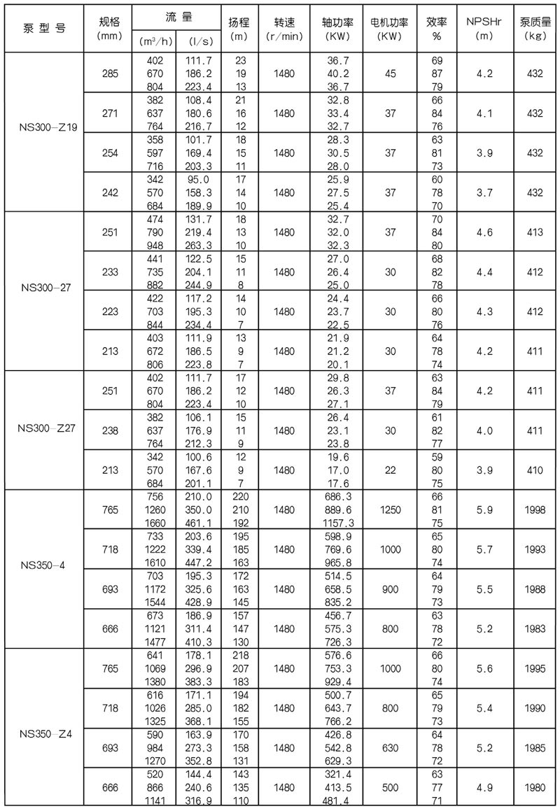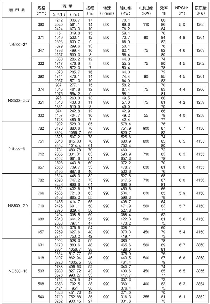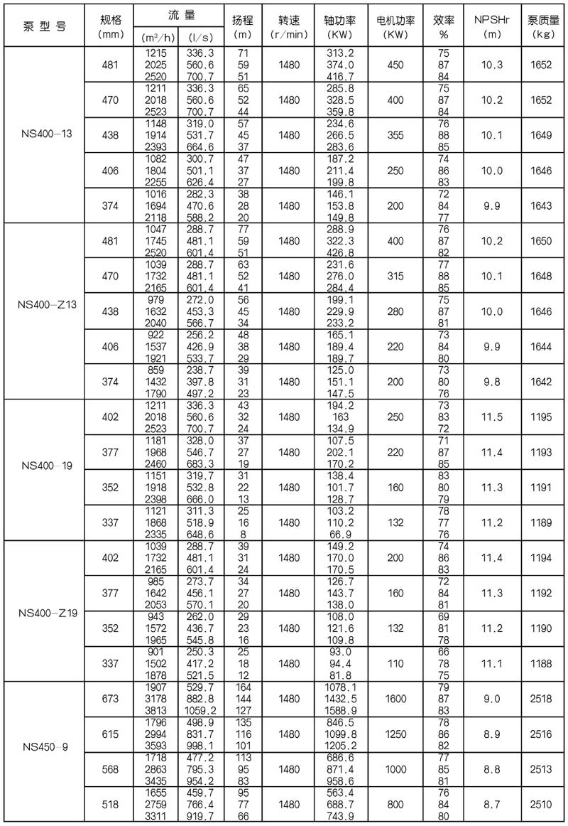 NS型單級雙吸中開式離心泵是我公司總結國內(nèi)外優(yōu)秀水力模型,廣泛吸收國內(nèi)外同類產(chǎn)品先進的設計制造技術,根據(jù)國內(nèi)市場實際需要開發(fā)的新型中開式雙吸泵。全系列泵型譜內(nèi)各型號規(guī)劃更加科學合理,高揚程雙吸泵可以代替部分多級泵,大流量雙吸泵可以代替部分混流泵,優(yōu)化匹配各水力尺寸,汽蝕和效率兼顧,滿足GB/T19762能效評價值,達到節(jié)能目標。結構再創(chuàng)新,運轉可靠維護方便、延長使用壽命,使中開式雙吸離心泵優(yōu)秀泵型發(fā)揮更大效益。我公司目前生產(chǎn)的雙吸泵有46種型號,390個規(guī)格,處于節(jié)能和使用性能范圍考慮,一個型號有兩種葉輪,叫標準葉輪和窄葉輪,以更優(yōu)性能滿足使用工況要求。本系列泵符合ISO2548C、GB3216、GB/T5657標準。