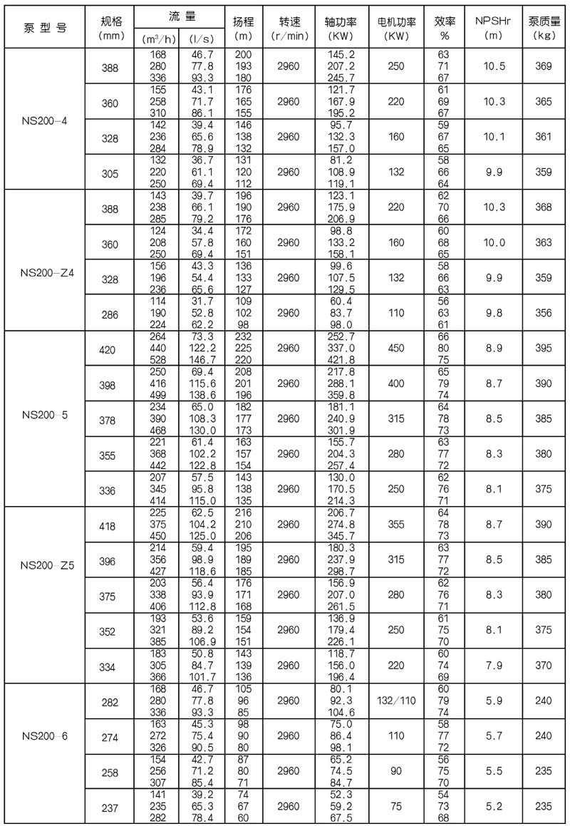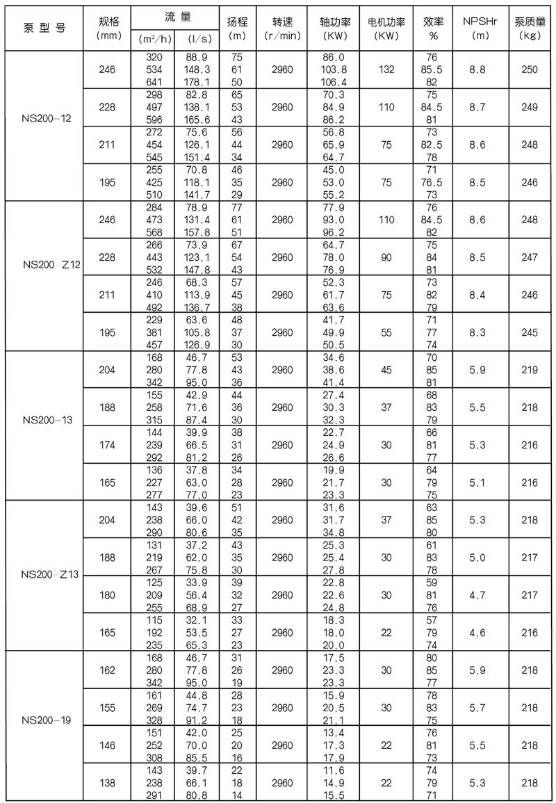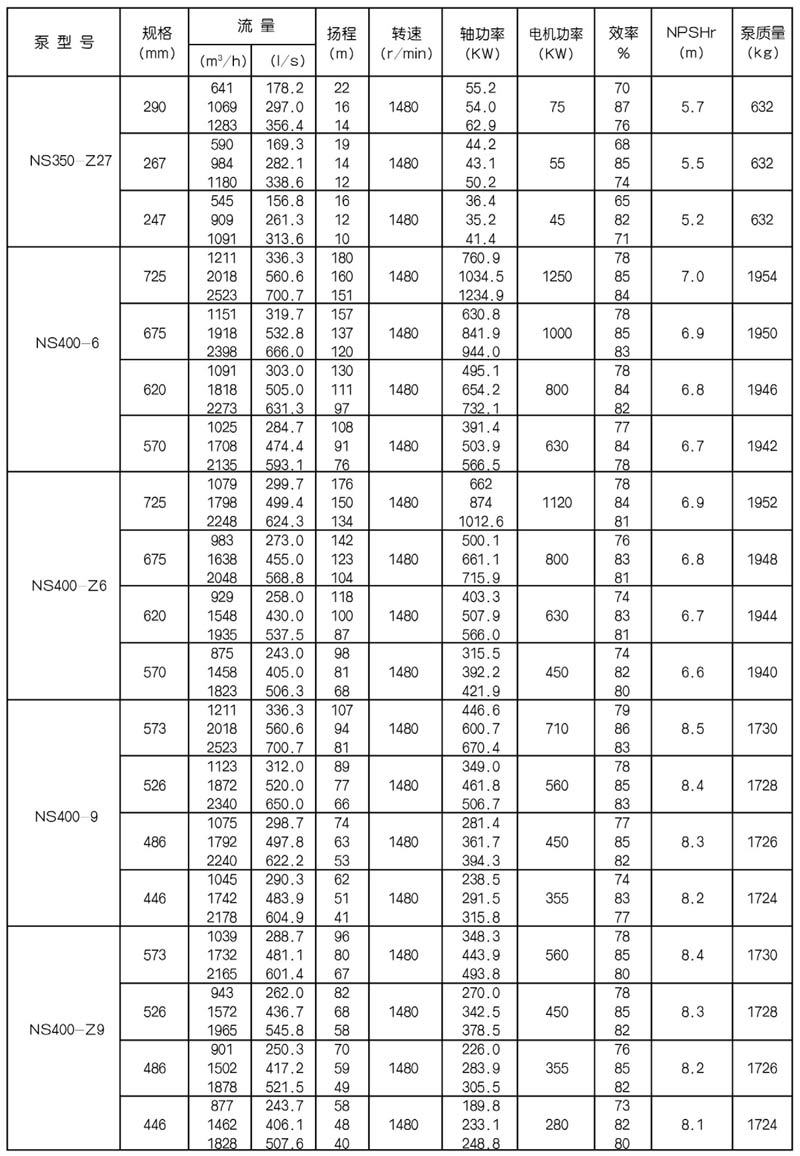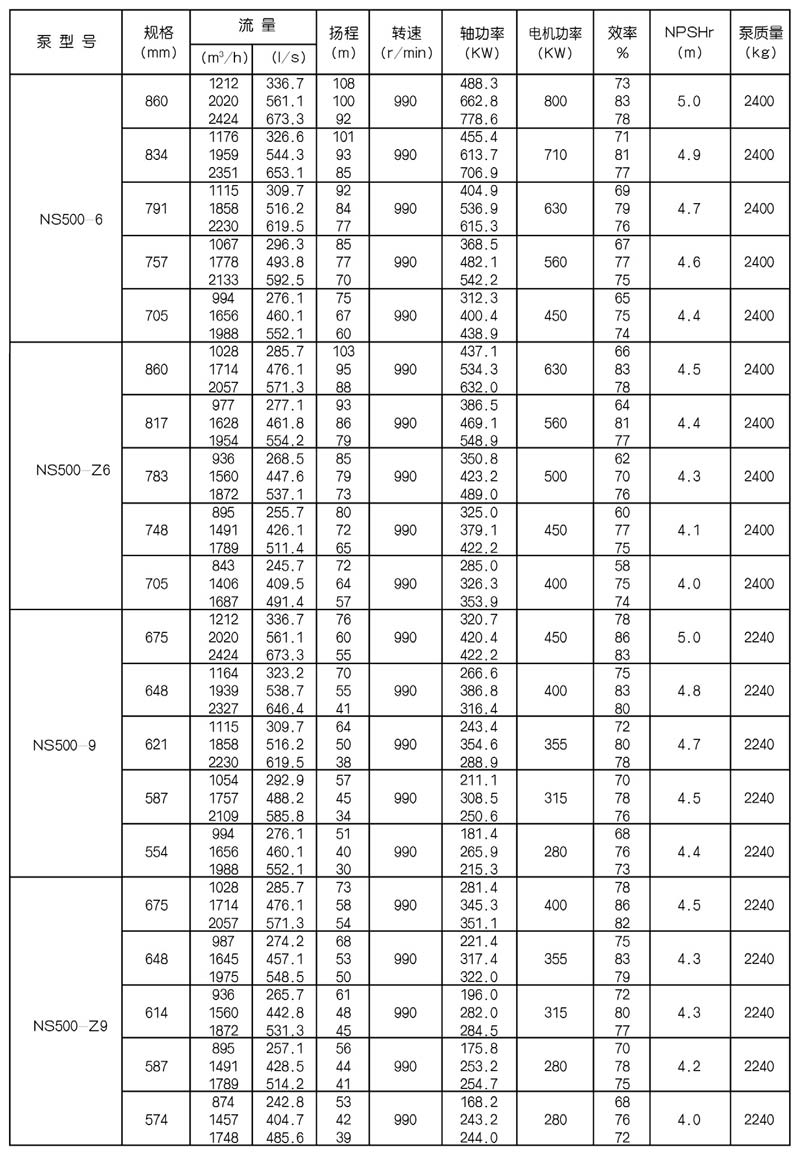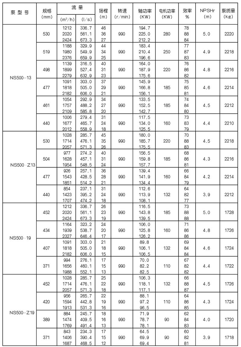 NS型單級雙吸中開式離心泵是我公司總結國內(nèi)外優(yōu)秀水力模型,廣泛吸收國內(nèi)外同類產(chǎn)品先進的設計制造技術,根據(jù)國內(nèi)市場實際需要開發(fā)的新型中開式雙吸泵。全系列泵型譜內(nèi)各型號規(guī)劃更加科學合理,高揚程雙吸泵可以代替部分多級泵,大流量雙吸泵可以代替部分混流泵,優(yōu)化匹配各水力尺寸,汽蝕和效率兼顧,滿足GB/T19762能效評價值,達到節(jié)能目標。結構再創(chuàng)新,運轉可靠維護方便、延長使用壽命,使中開式雙吸離心泵優(yōu)秀泵型發(fā)揮更大效益。我公司目前生產(chǎn)的雙吸泵有46種型號,390個規(guī)格,處于節(jié)能和使用性能范圍考慮,一個型號有兩種葉輪,叫標準葉輪和窄葉輪,以更優(yōu)性能滿足使用工況要求。本系列泵符合ISO2548C、GB3216、GB/T5657標準。