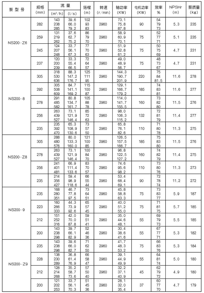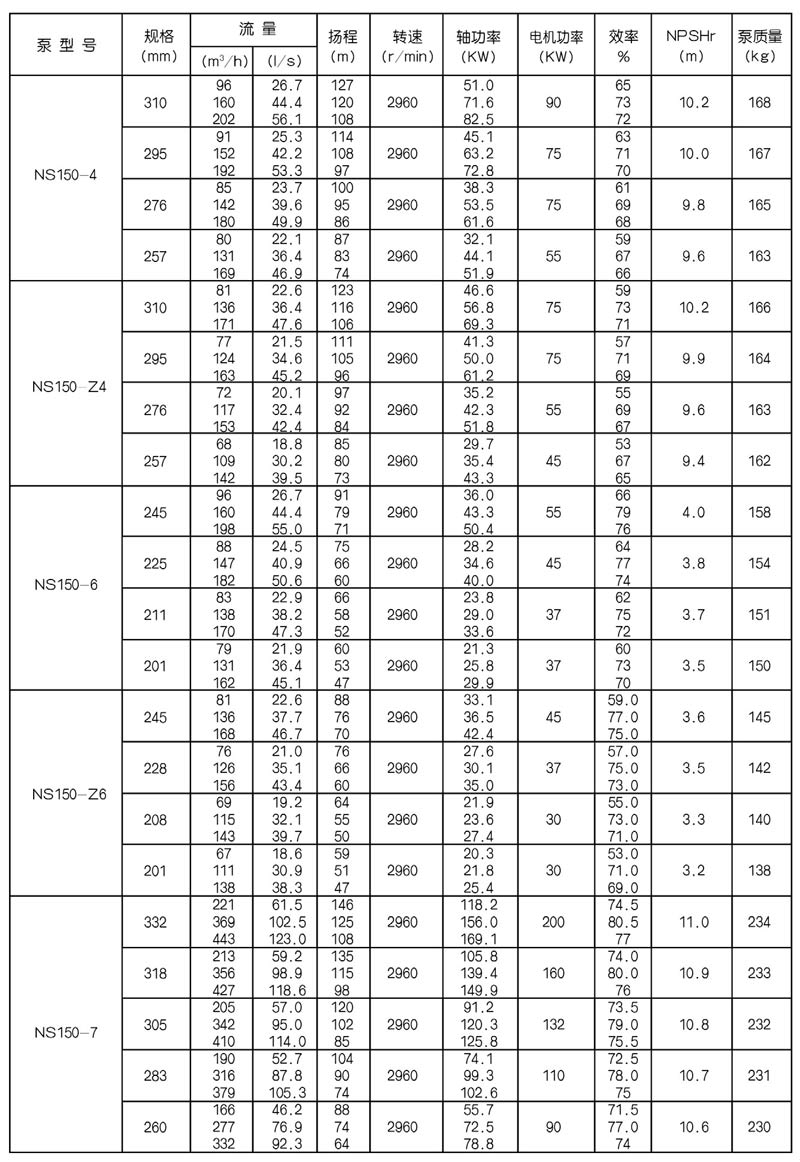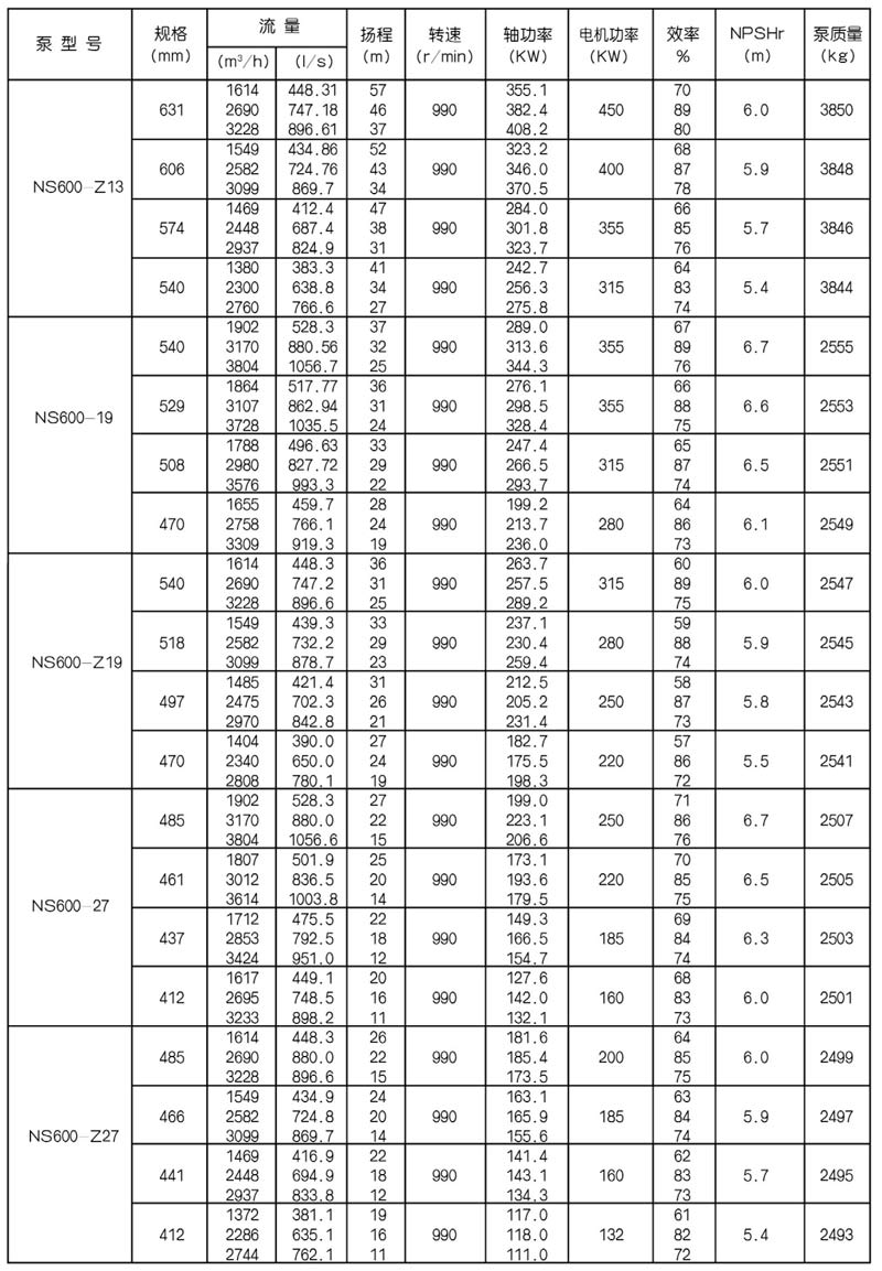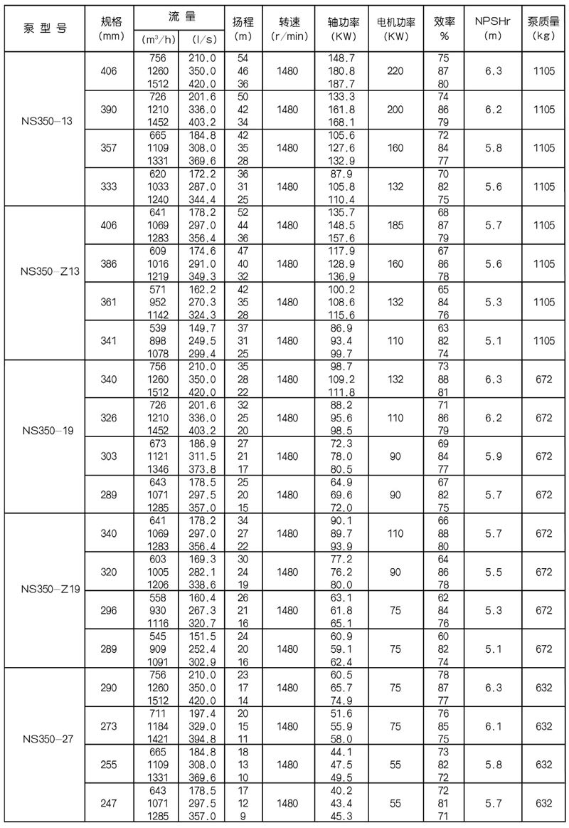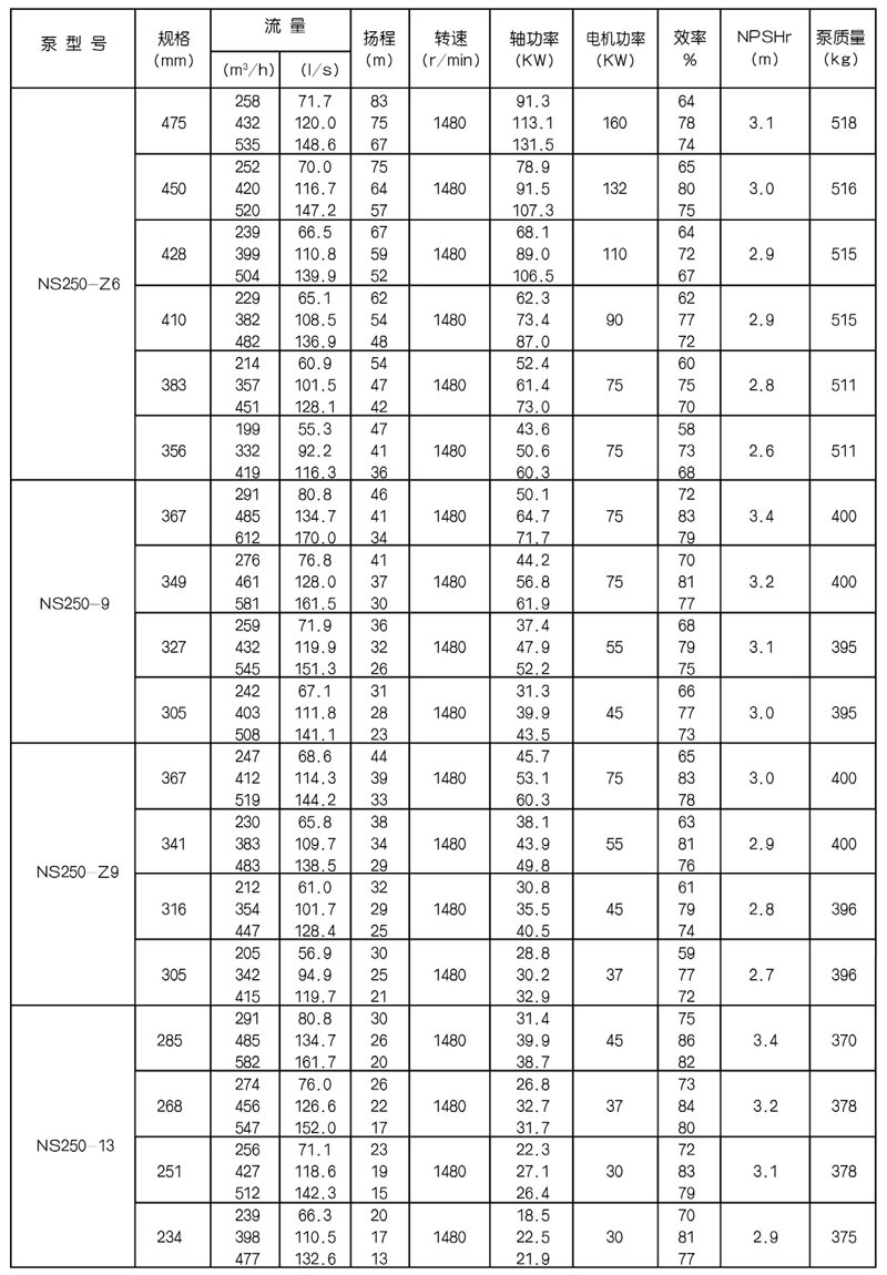 NS型單級雙吸中開式離心泵是我公司總結國內(nèi)外優(yōu)秀水力模型,廣泛吸收國內(nèi)外同類產(chǎn)品先進的設計制造技術,根據(jù)國內(nèi)市場實際需要開發(fā)的新型中開式雙吸泵。全系列泵型譜內(nèi)各型號規(guī)劃更加科學合理,高揚程雙吸泵可以代替部分多級泵,大流量雙吸泵可以代替部分混流泵,優(yōu)化匹配各水力尺寸,汽蝕和效率兼顧,滿足GB/T19762能效評價值,達到節(jié)能目標。結構再創(chuàng)新,運轉可靠維護方便、延長使用壽命,使中開式雙吸離心泵優(yōu)秀泵型發(fā)揮更大效益。我公司目前生產(chǎn)的雙吸泵有46種型號,390個規(guī)格,處于節(jié)能和使用性能范圍考慮,一個型號有兩種葉輪,叫標準葉輪和窄葉輪,以更優(yōu)性能滿足使用工況要求。本系列泵符合ISO2548C、GB3216、GB/T5657標準。