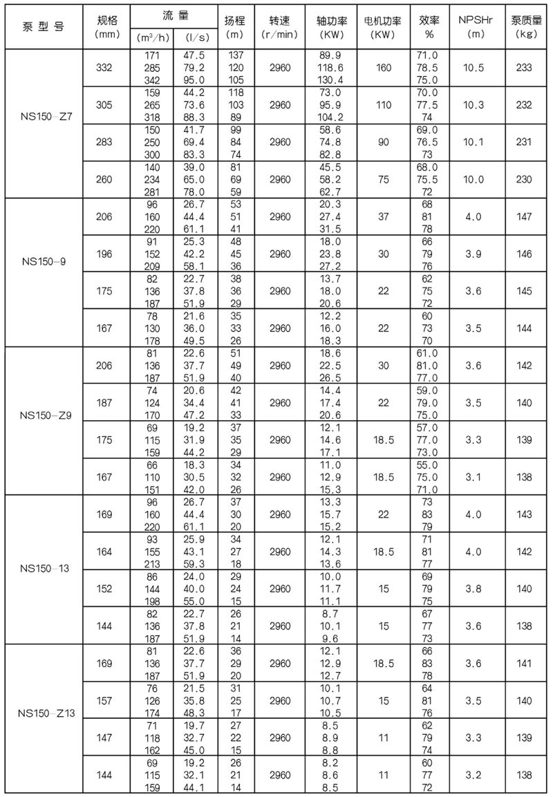 4···················水泵葉輪名義比轉數(shù)的1/10,Z一窄葉輪,無乙為標準葉輪